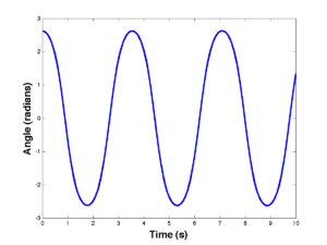 [theta0,theta1,time] = pend(InitialAngle,InitialVelocity,len,dt,stopTime);